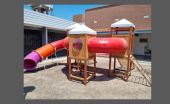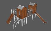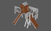 Escalera: Madera dura de alta durabilidad para exteriores o metalica (caño estructural)